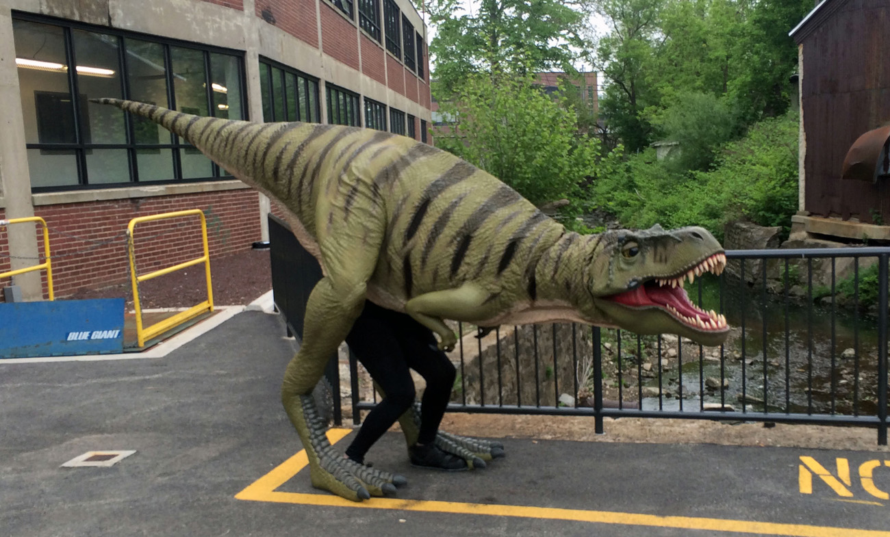 Creating a fourteen foot long, juvenile Tyrannosaurus Rex puppet was one of our largest projects to date, in every sense. The Cretaceous puppet is designed to be sturdy enough to endure long summers, outdoors, while being light enough to not tax the puppeteer within. Along with a fully articulated neck, it boasts blinking eyes and snapping jaws. You can see it, every summer, at Field Station: Dinosaurs!